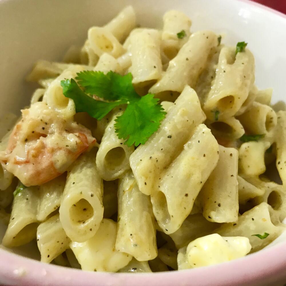 Hervir la pasta durante 10 minutos y retirarla. En una olla colocar un chorrito de aceite de oliva, añadir el ajo picado y el ají amarillo licuado. Saltear los langostinos, añadir el culantro y sumar la crema de arroz. Incorporar la pasta, revolver, añadir la sal de maras y bon apetit!